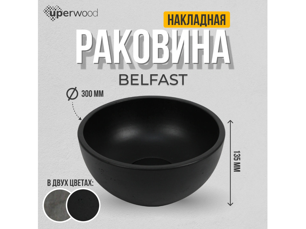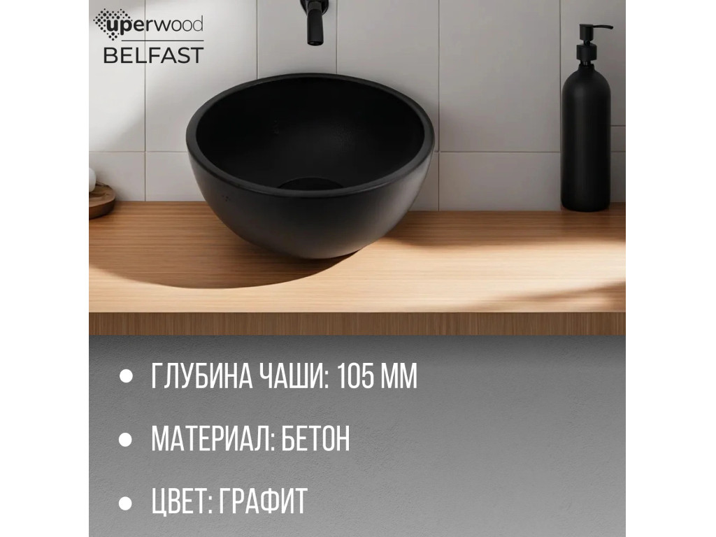 - Раковина Uperwood Belfast бетонная черная
