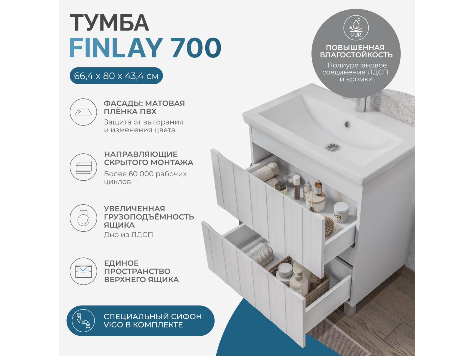 - Тумба под раковину Finlay 700-0-2 (Como)