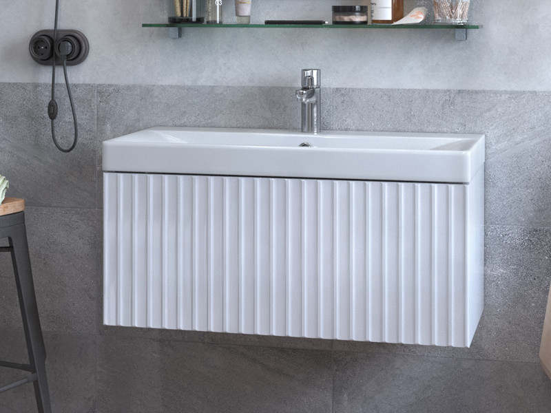 Материалы тумбы: МДФ, влагостойкая ЛДСП, полимерное покрытие ПВХ, врезная ручка, европейская фурнитура