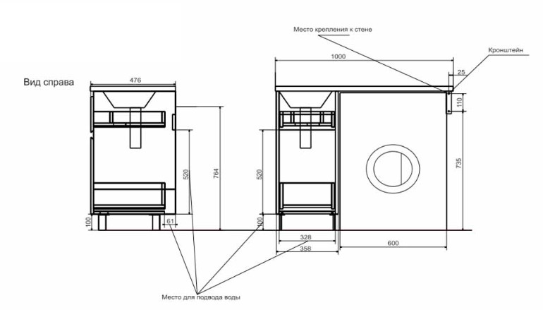 Размер ШхГхВ: 358/1000х476х885 мм