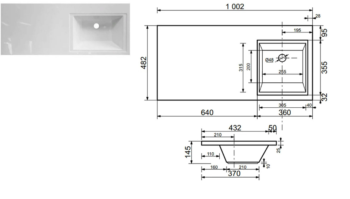 - Тумба с раковиной Dallas Luxe 1000 напольная 2 ящика правая