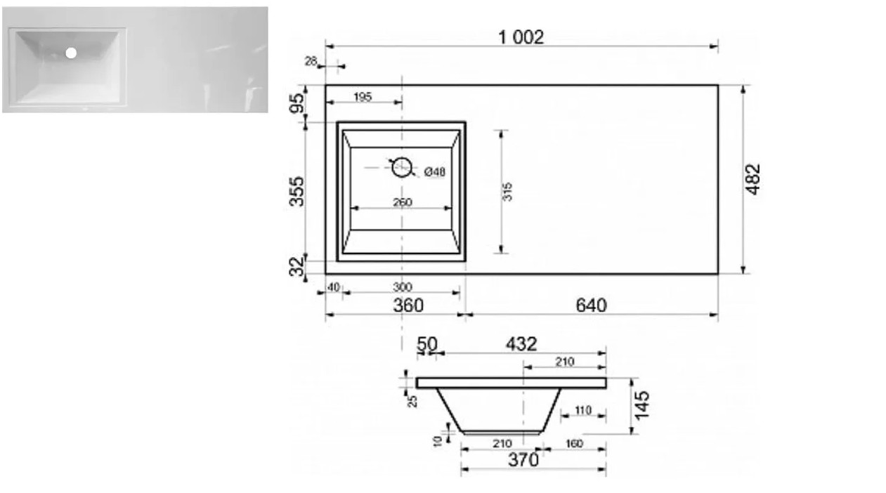 - Тумба с раковиной Dallas Luxe 1000 напольная 3 ящика левая