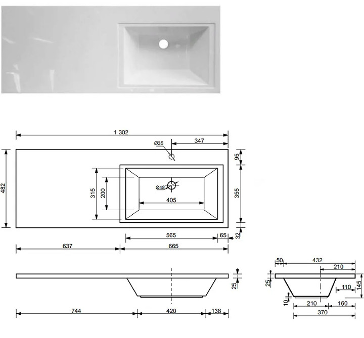 - Тумба с раковиной Dallas Luxe 1300 навесная 1 ящик правая