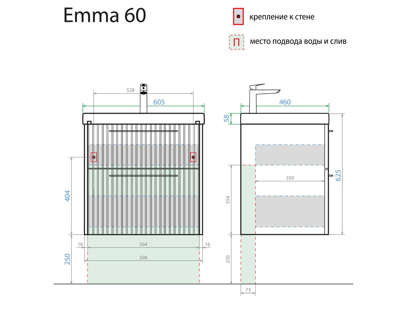 - Тумба с раковиной Emma 60 Умывальник Como 60