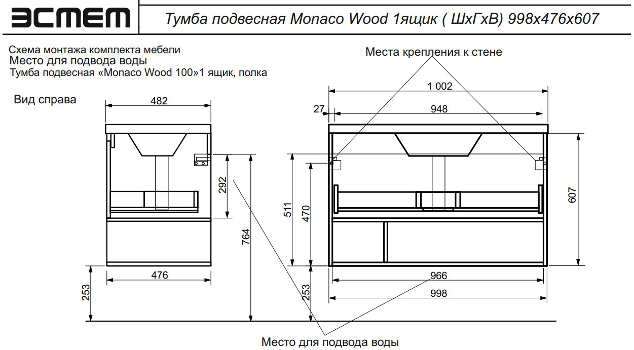 - Тумба с раковиной Monaco Wood 1000 1 ящик с нишей