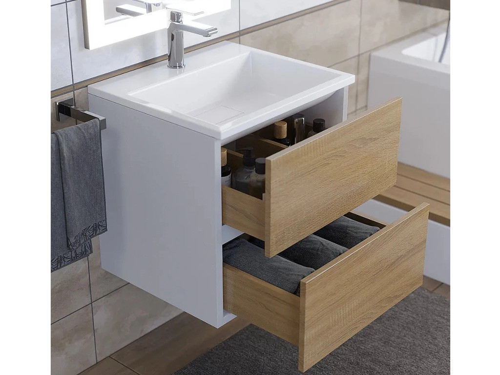 Тумба с раковиной Uperwood Barsa 50 см раковина белая-тумба белая/дуб сонома