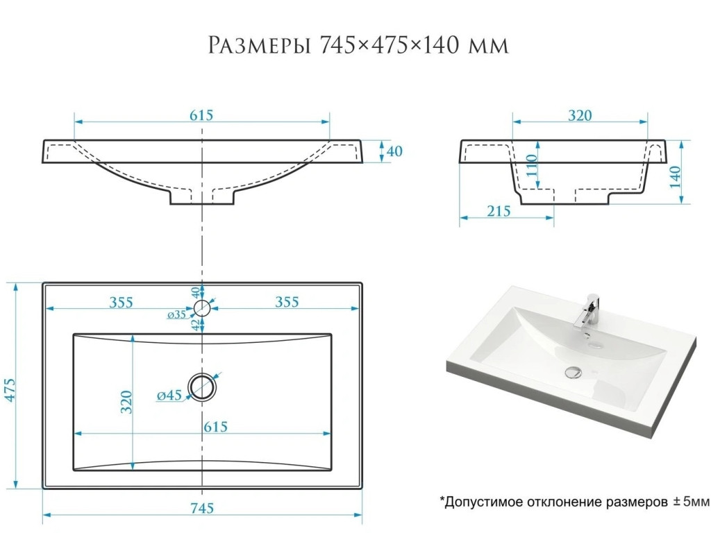 - Глубина (см) 47,5