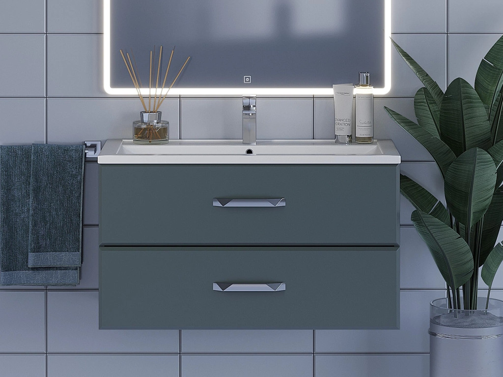 - Тумба с раковиной Uperwood Foster серый графит 90 см