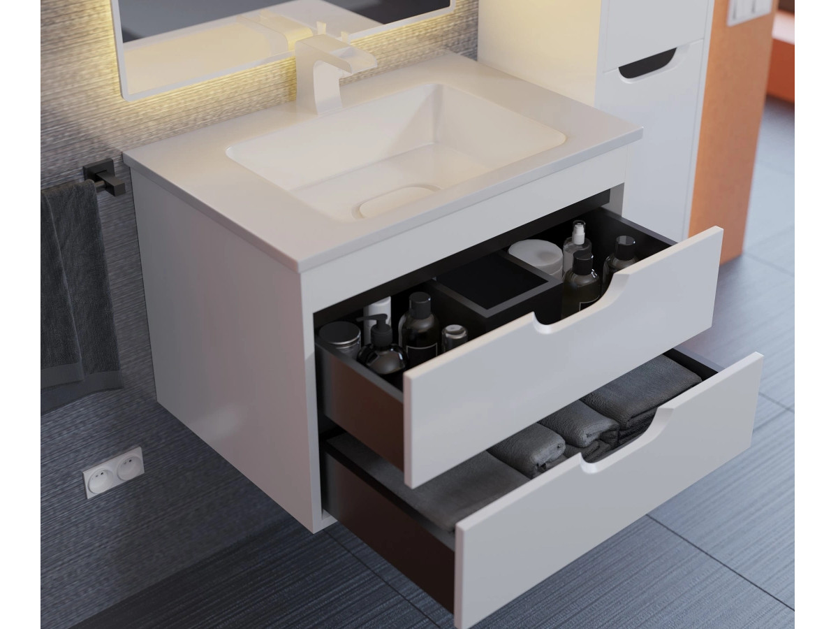 - Тумба с раковиной Uperwood Modul матовая белая/графит 65 см