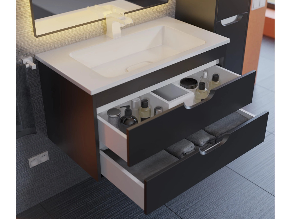 - Тумба с раковиной Uperwood Modul матовая черная 80 см