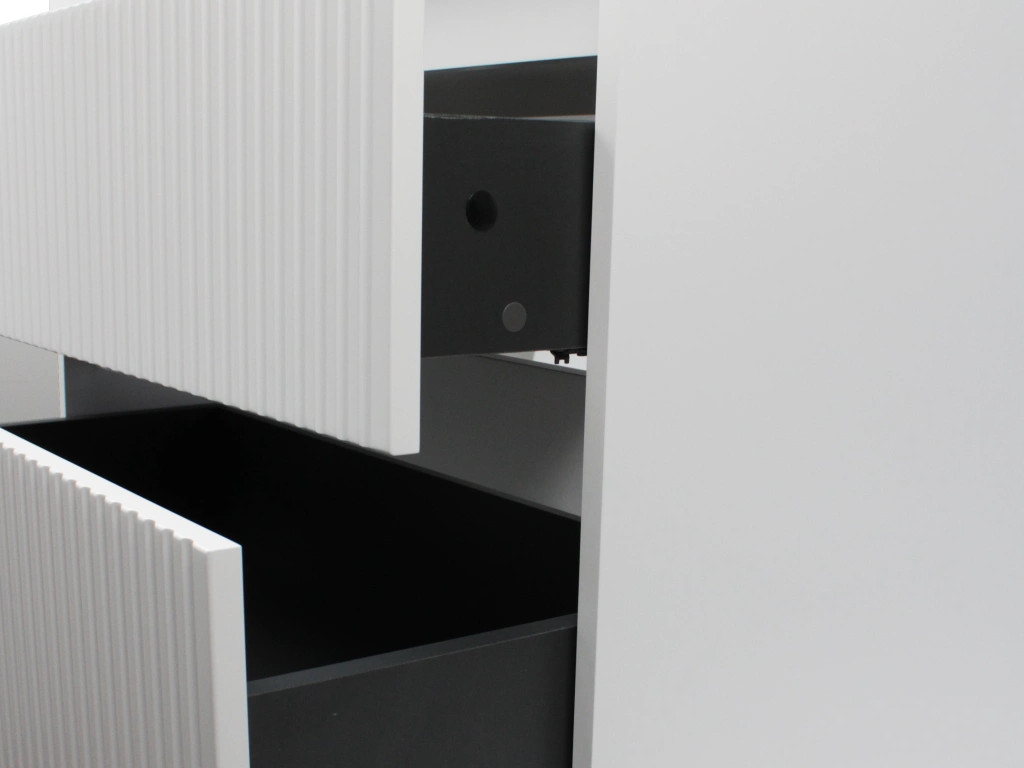 - Фасад и боковые стенки изделия выполнены из МДФ толщиной 16 мм. Фасады с вертикальной фрезеровкой.
