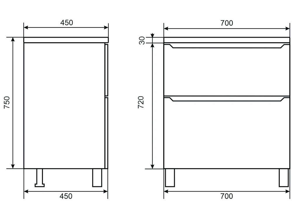 - Тумба с раковиной Uperwood Tanos 2 ящика напольная 70 см черная