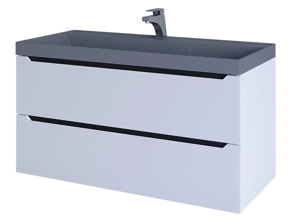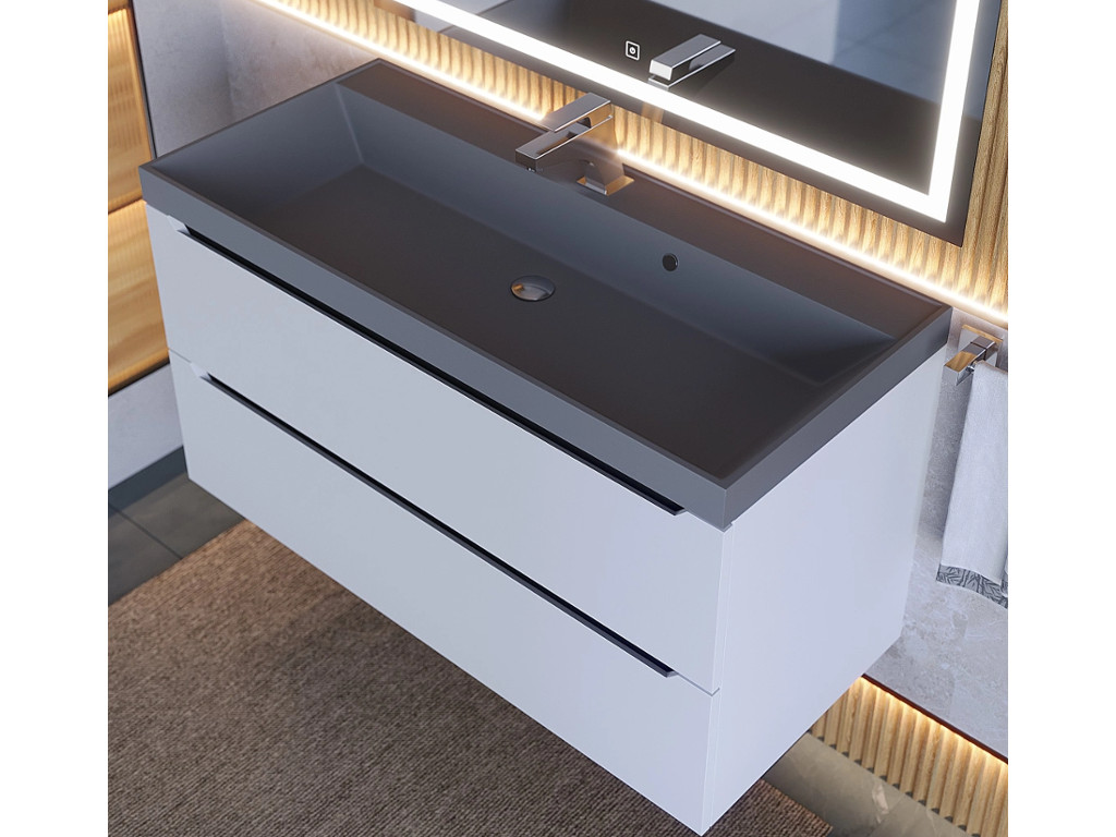 - Тумба с раковиной Uperwood Tanos-Classic Quartz белая графит/бетон 100 см
