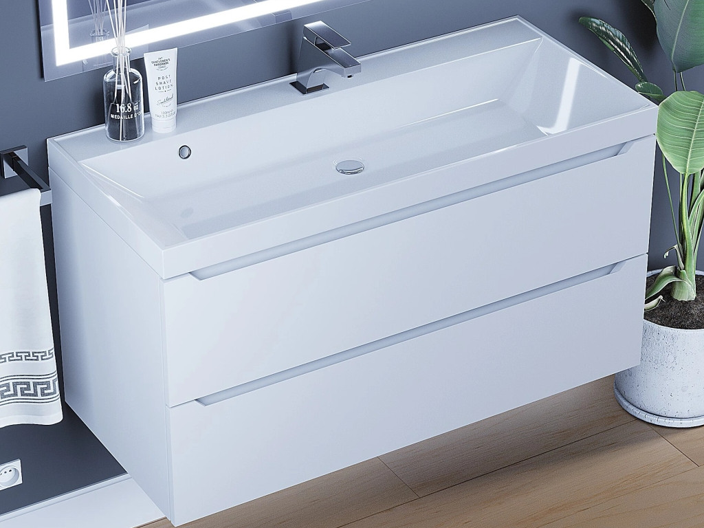 Тумба с раковиной Uperwood Tanos матовая белая 100 см