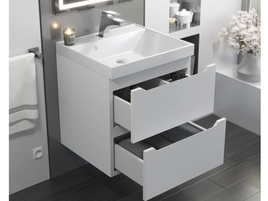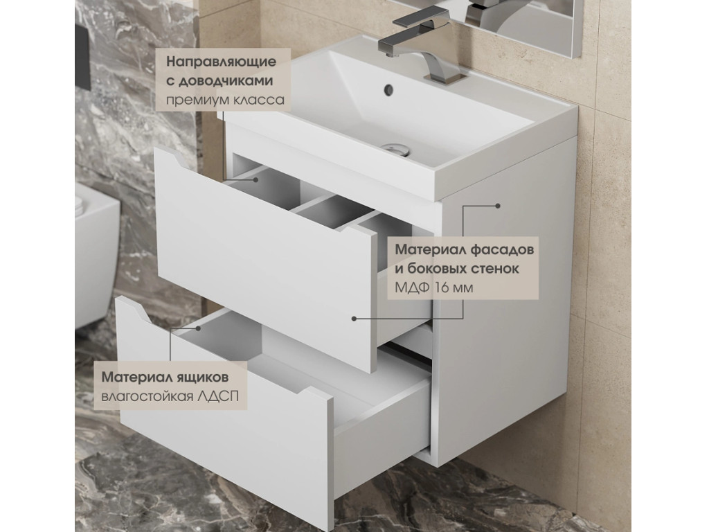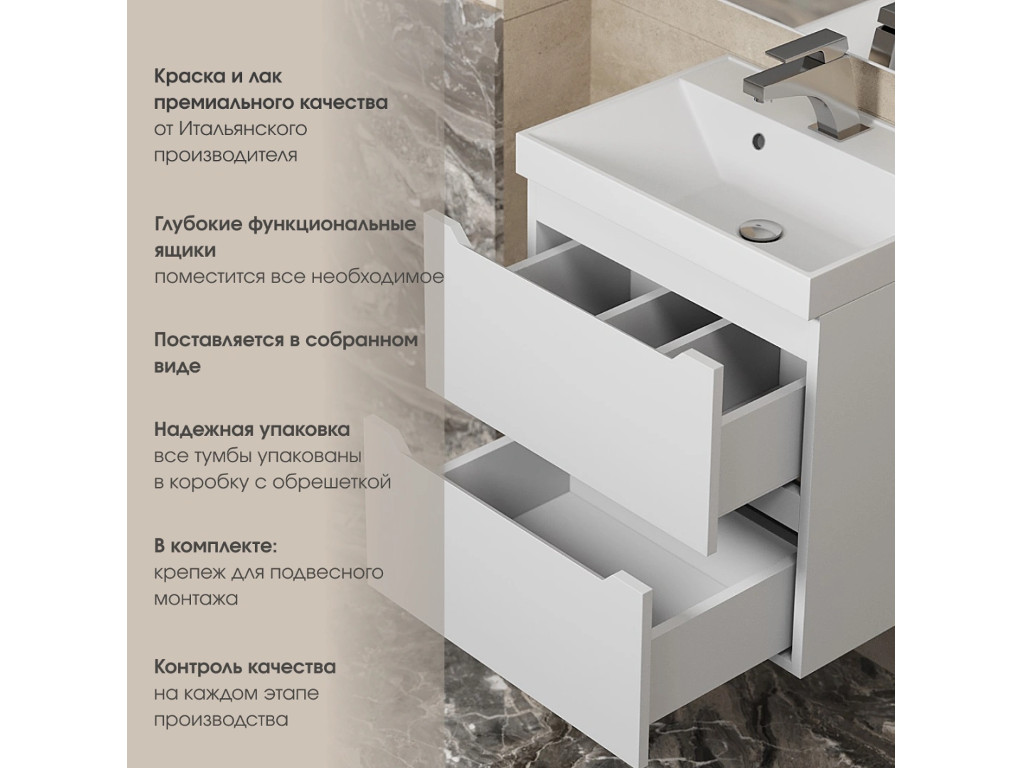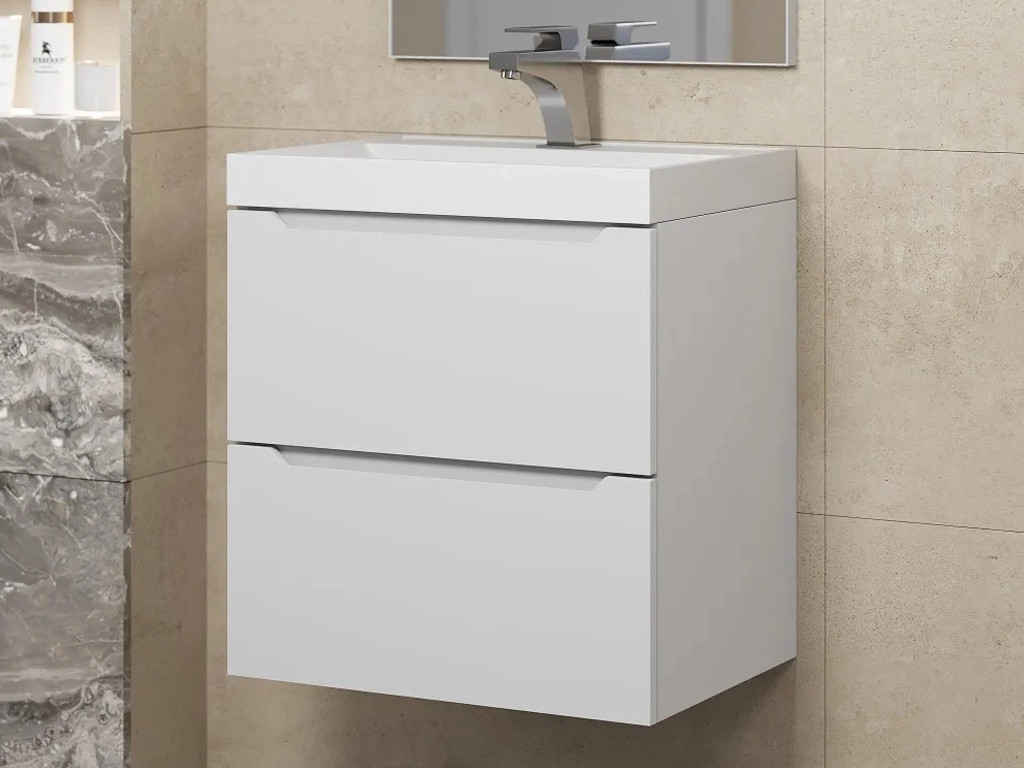 - Тумба с раковиной Uperwood Tanos матовая белая 50 см