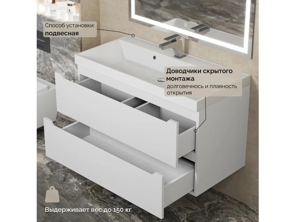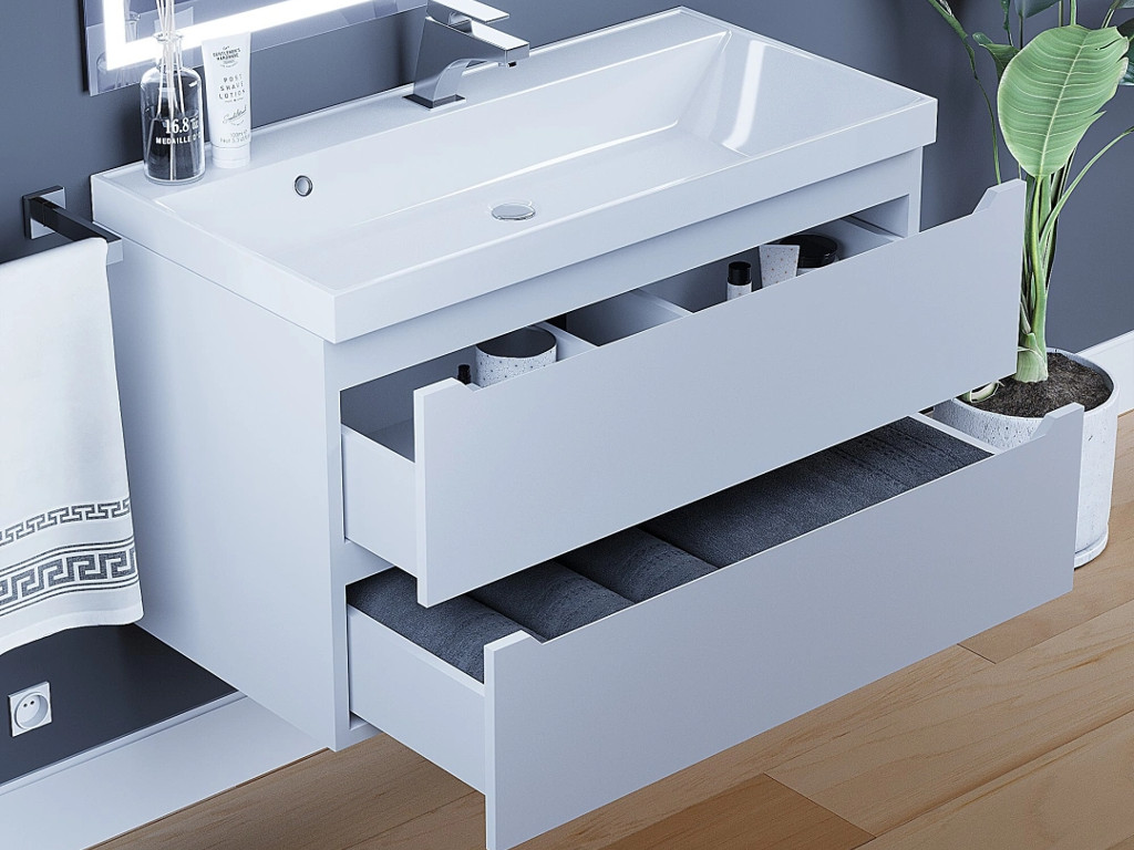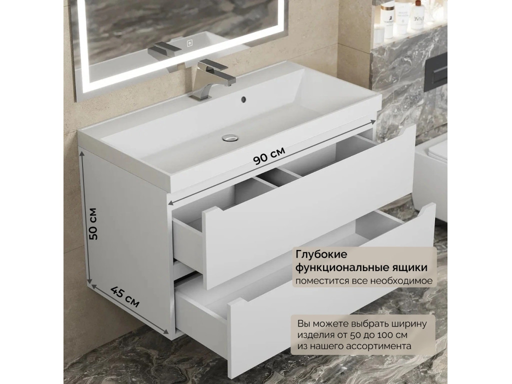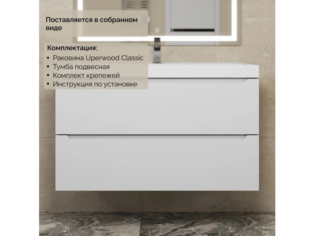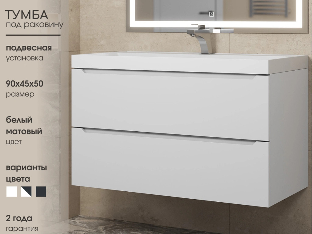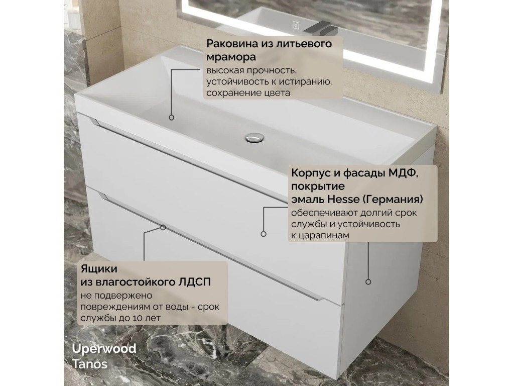 - Тумба с раковиной Uperwood Tanos матовая белая 90 см