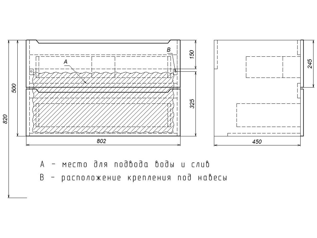 - Тумба с раковиной Uperwood Tanos матовая белая/графит 80 см