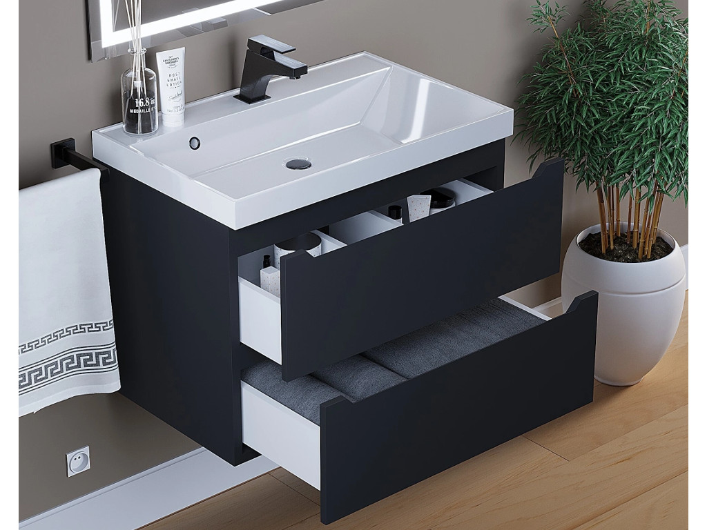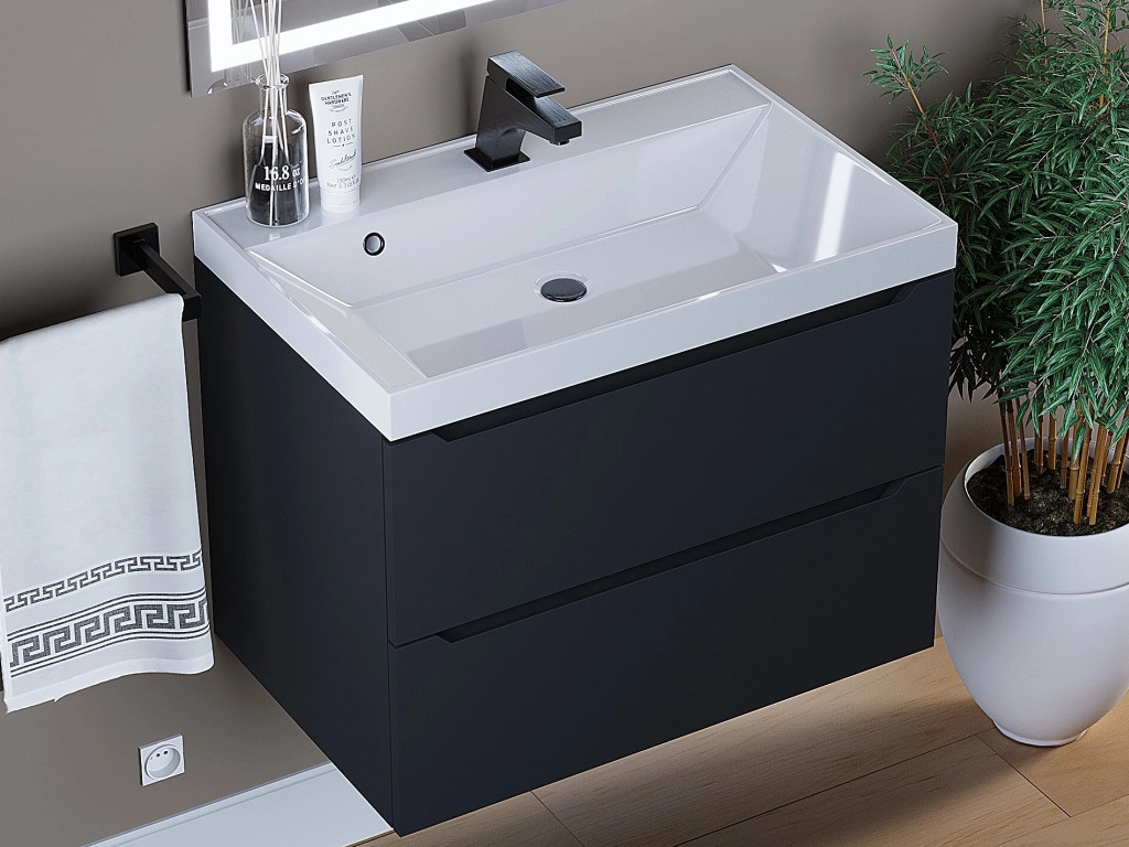 - Тумба с раковиной Uperwood Tanos матовая черная 70 см