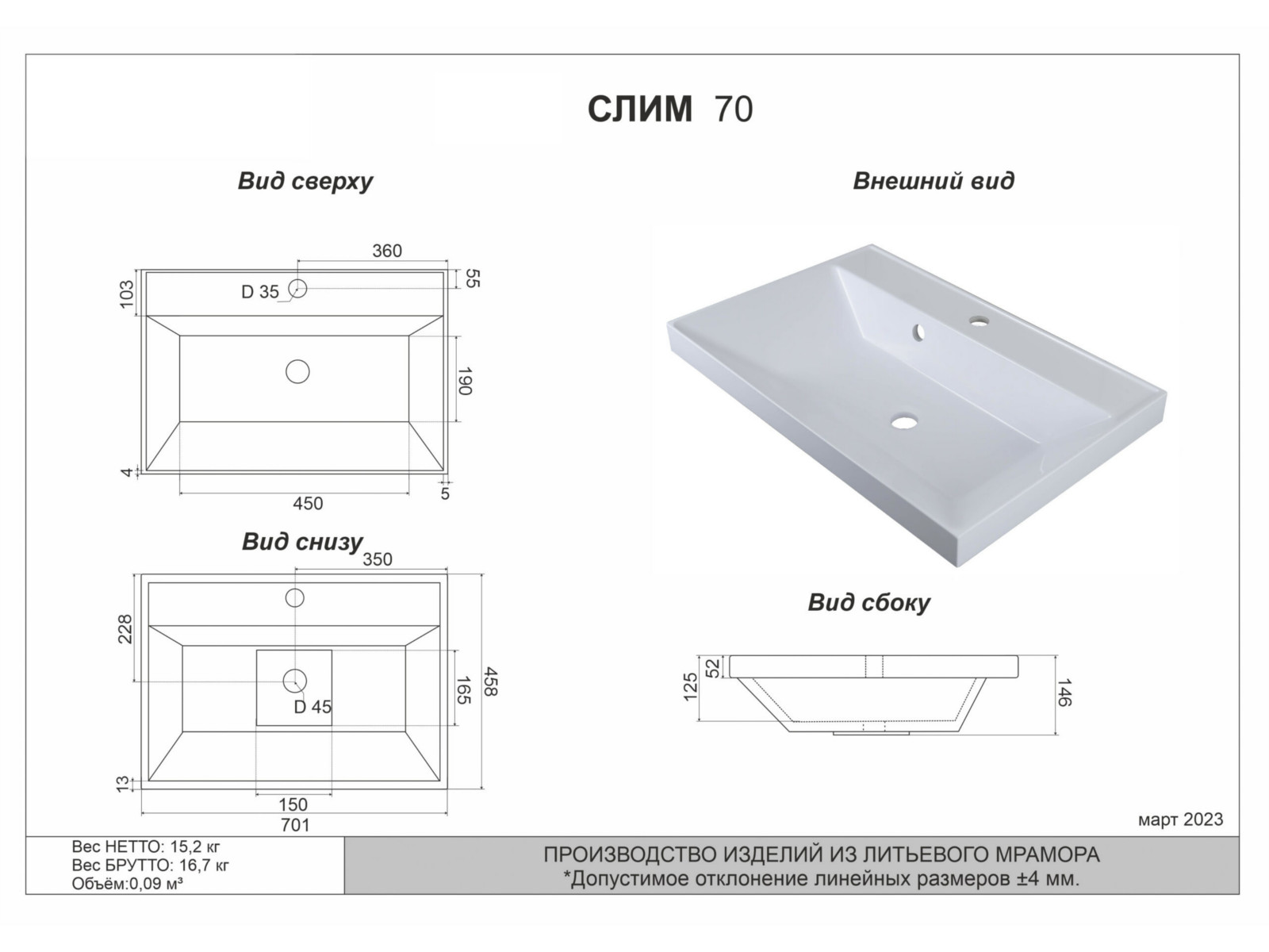 - ширина 700 мм
