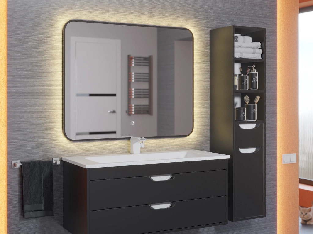 - Зеркало Uperwood Modul черное теплая подсветка 60х80 см