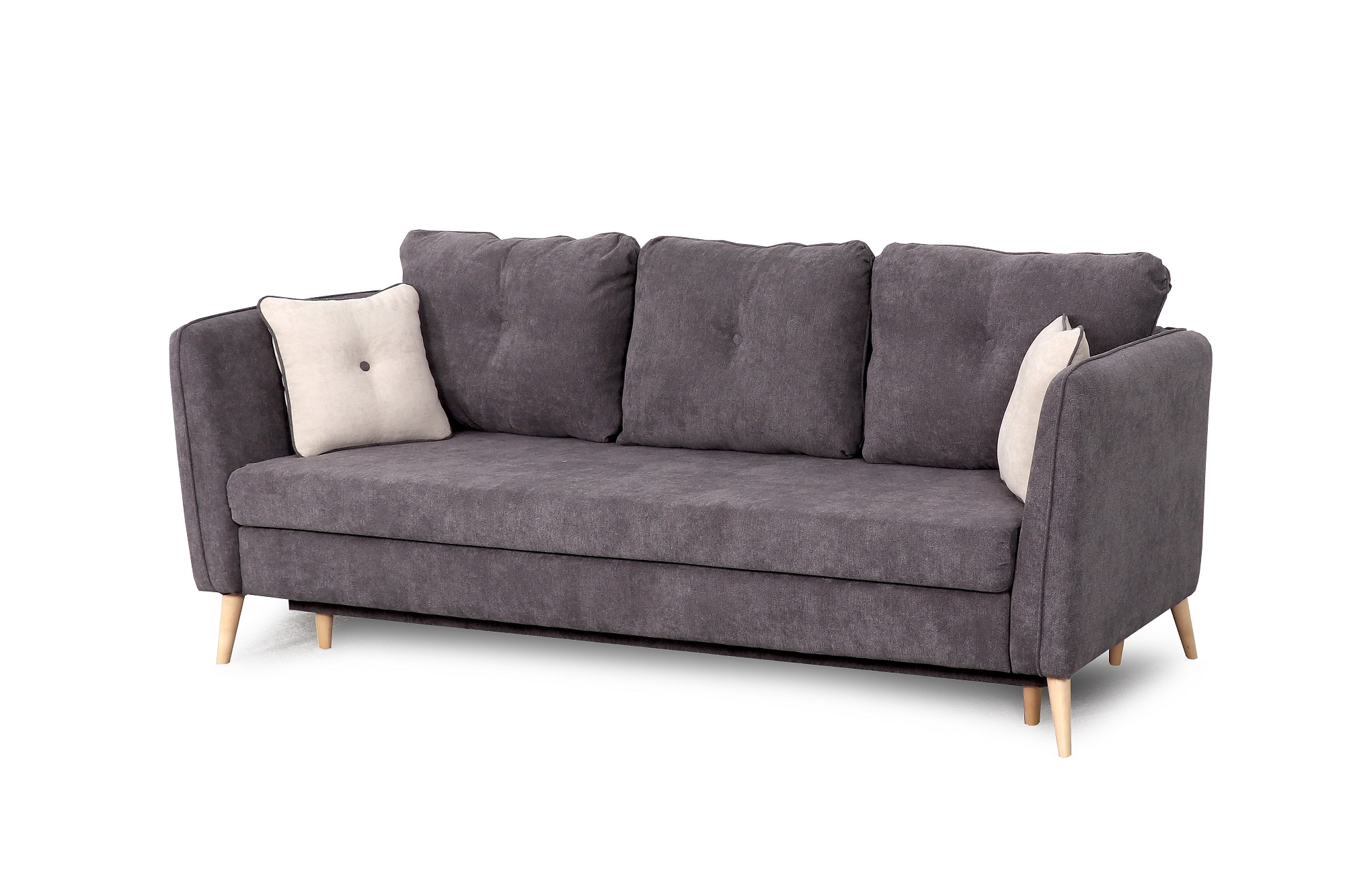 Элементы декора: Декоративные опоры из натуральной древесины (берёза), декоративная отстрочка, декоративные утяжки с пуговицами на подушках