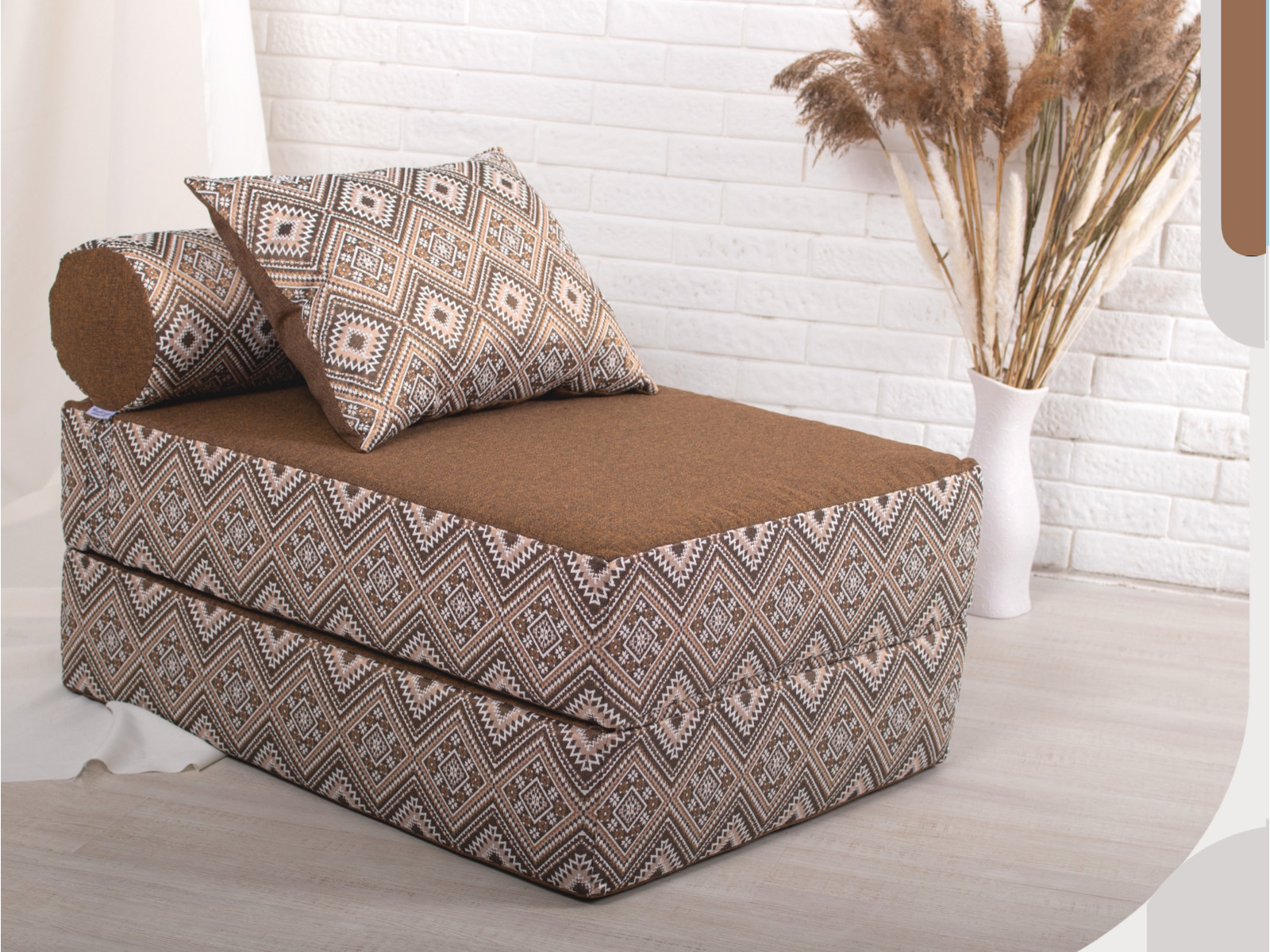 - Кресло-кровать Коста коричневый с принтом