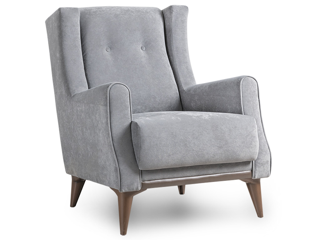 Декор: Декоративный кант из основной ткани по переднему торцу подлокотника; Утяжка спинки на 2 декоративные пуговицы из основного материала; Декоративный элемент царги из материала-компаньона.