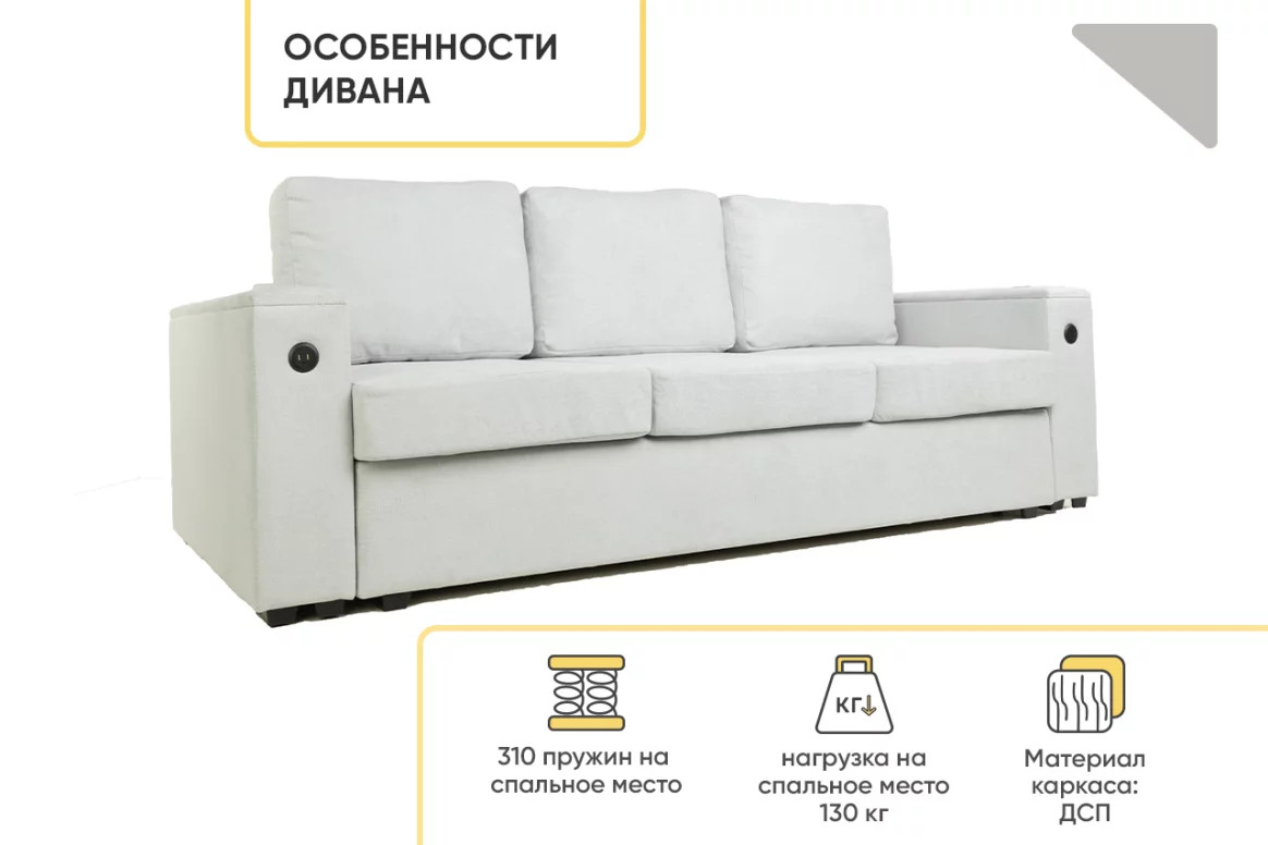 Диван Кулат с пружиной змейкой Серый Moss 900
