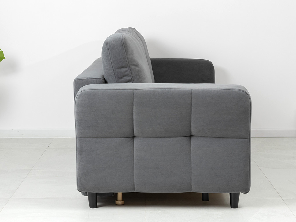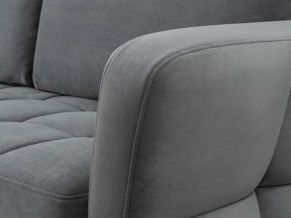 Ровная отстрочка по всему периметру сидения и стежка? создающая эффект пышности выделенных форм. Подлокотники прямые с изгибом в наружные стороны, с выраженной стежкой по лицевой стороне. Стежка на посадочной части дивана.