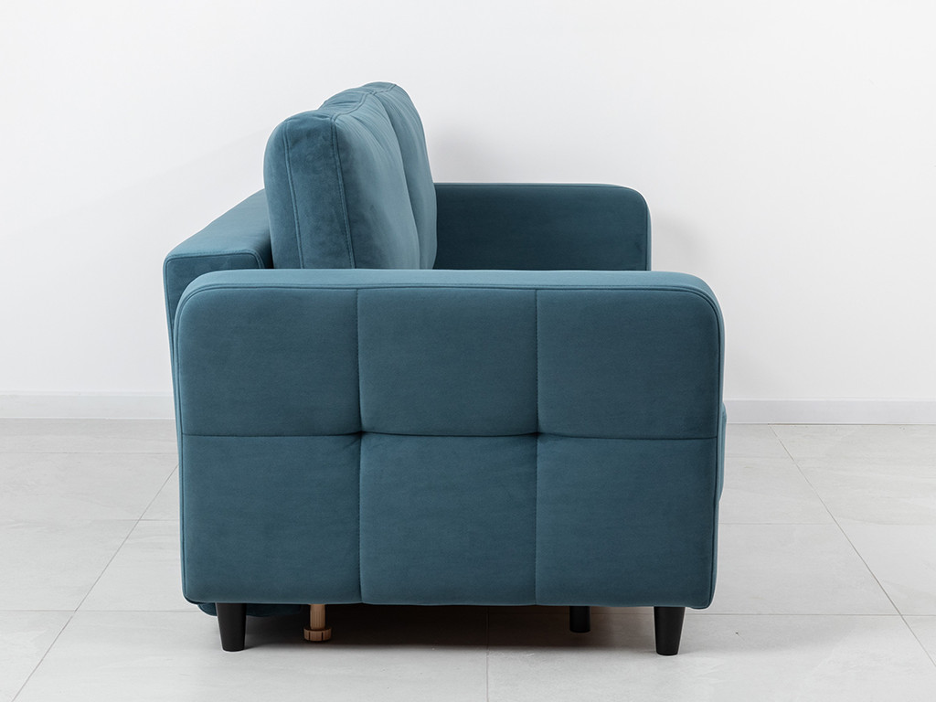 Ровная отстрочка по всему периметру сидения и стежка? создающая эффект пышности выделенных форм. Подлокотники прямые с изгибом в наружные стороны, с выраженной стежкой по лицевой стороне. Стежка на посадочной части дивана.