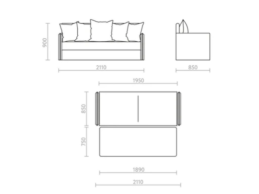- Длина спального места, мм 1950, 1890