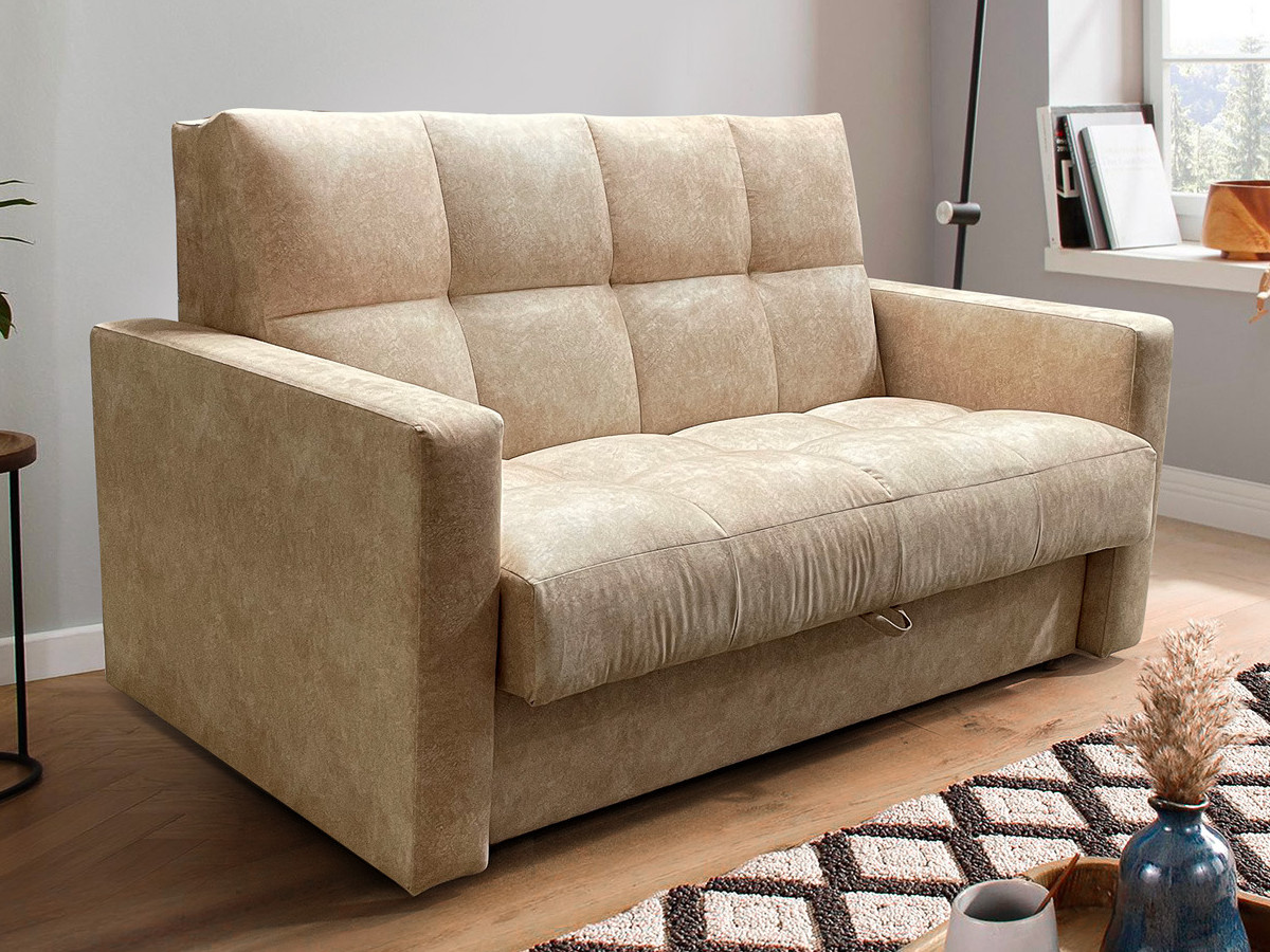 Диван Рэй Клетка 1600х2000 с прямыми подлокотниками бежевый велюр