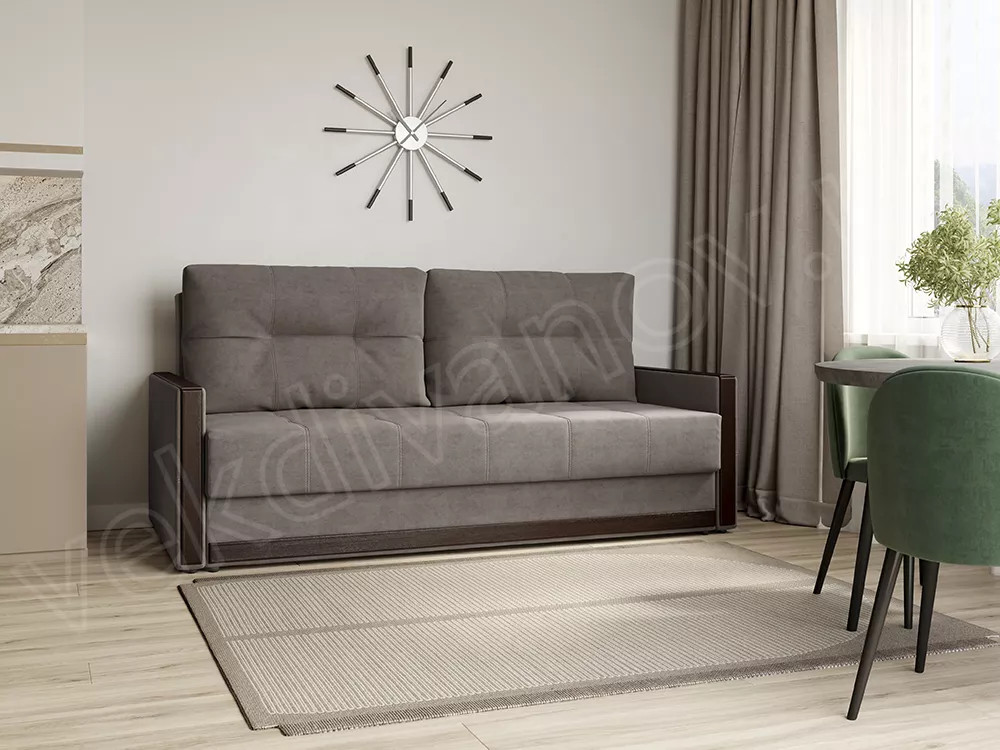 Наполнитель: в основании спального места независимый пружинный блок с дополнительным многослойным покрытием: термовойлок, высокоэластичный пенополиуретан, синтепон; подушки спинки имеют внутренний чехол, наполнитель комбинированный, гипоаллергенный пух «комфорель» с пенополиуретановой крошкой. Накладки – МДФ цвета венге.