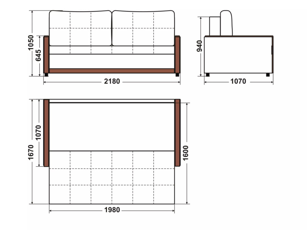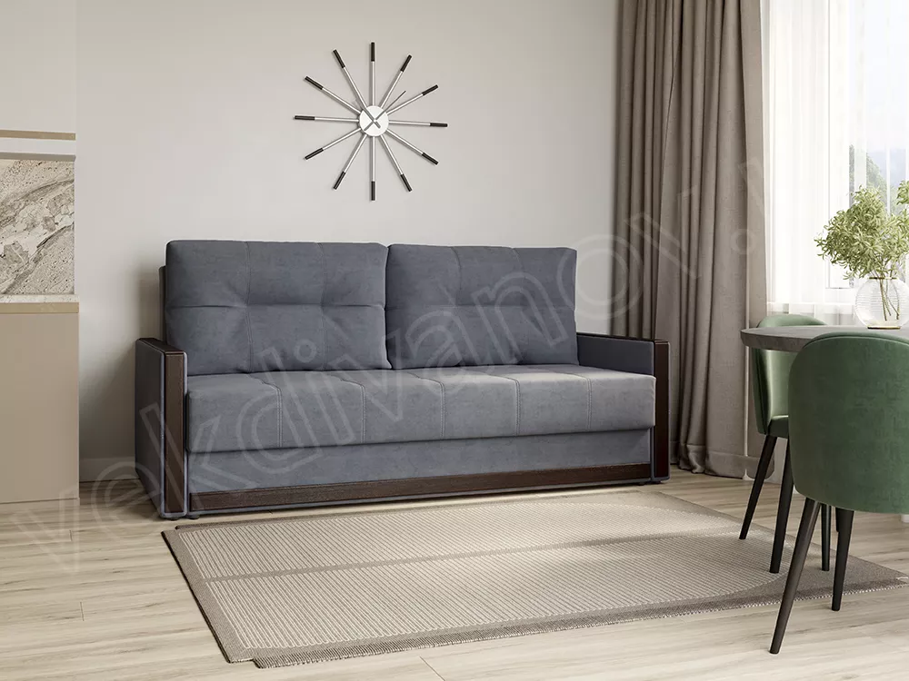 Наполнитель: в основании спального места независимый пружинный блок с дополнительным многослойным покрытием: термовойлок, высокоэластичный пенополиуретан, синтепон; подушки спинки имеют внутренний чехол, наполнитель комбинированный, гипоаллергенный пух «комфорель» с пенополиуретановой крошкой. Накладки – МДФ цвета венге.