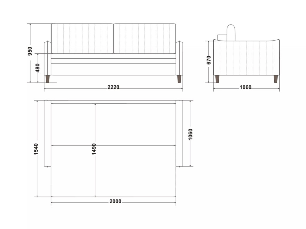 Размеры дивана (мм):  2220*1060*950
