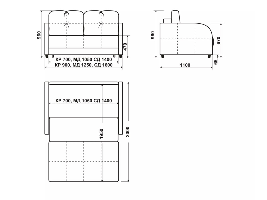 Размеры дивана (мм): 1600х1100х960