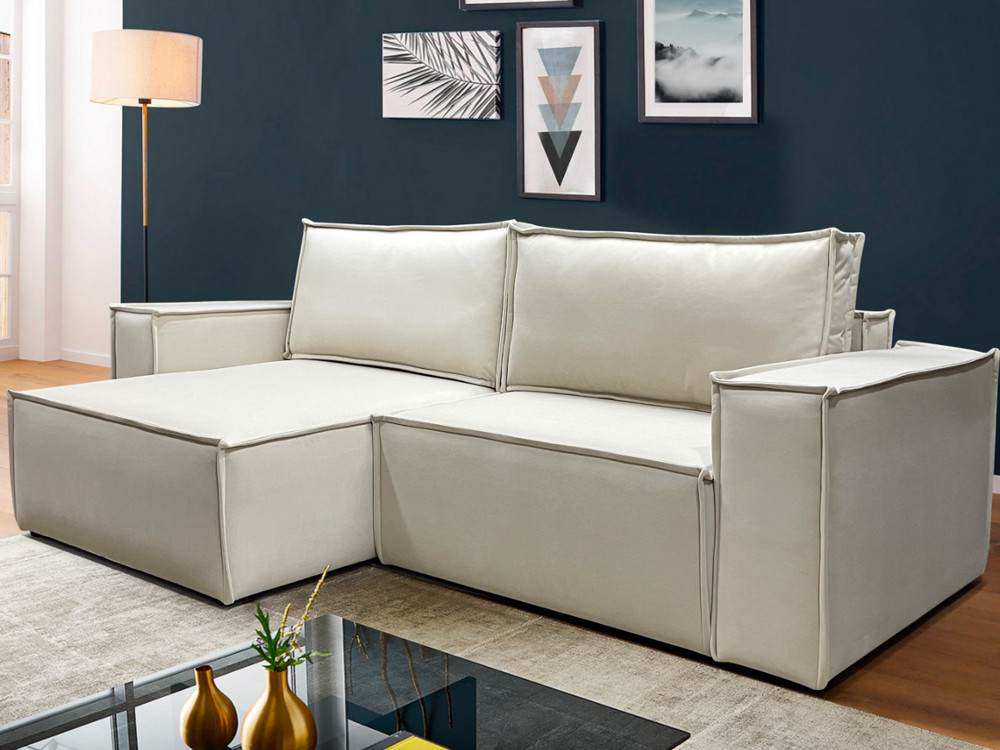 - Диван с оттоманкой Бокс Vivaldi светло-бежевый велюр