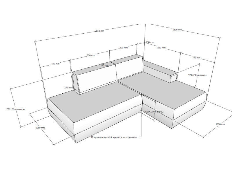 Размеры общие: 2550*1800*1050 мм