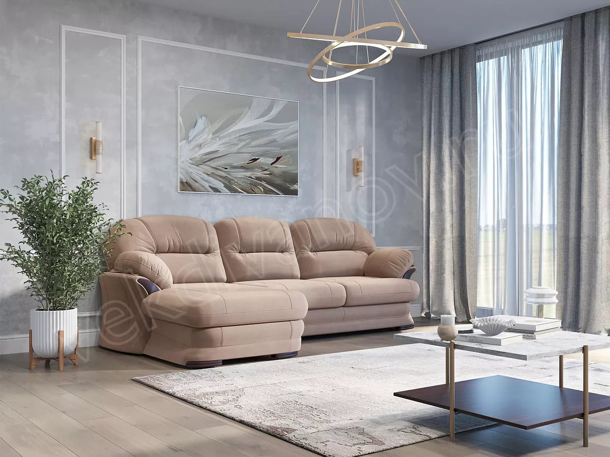 Наполнитель: Спинка и сидение выполнены из высокоэластичного пенополиуретана в сочетании с пружиной змейкой. Подушки сидения выполнены из высокоэластичного пенополиуретана повышенной плотности. В подушках спинки и в подушках подлокотников – гипоаллергенный пух «комфорель». Декоративные элементы выполнены из МДФ.