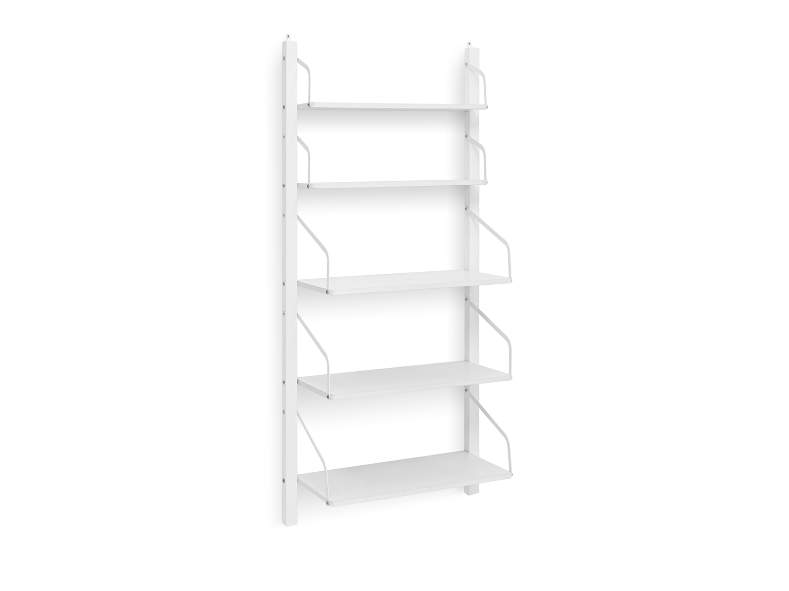 Конструкция детского стеллажа навесная и крепится к стене с помощью двух надежных металлических мебельных навесов. Стеллаж состоит из 5 полок. Высокопрочная конструкция стеллажа позволяет выдержать нагрузку на одну полку до 10 кг.
