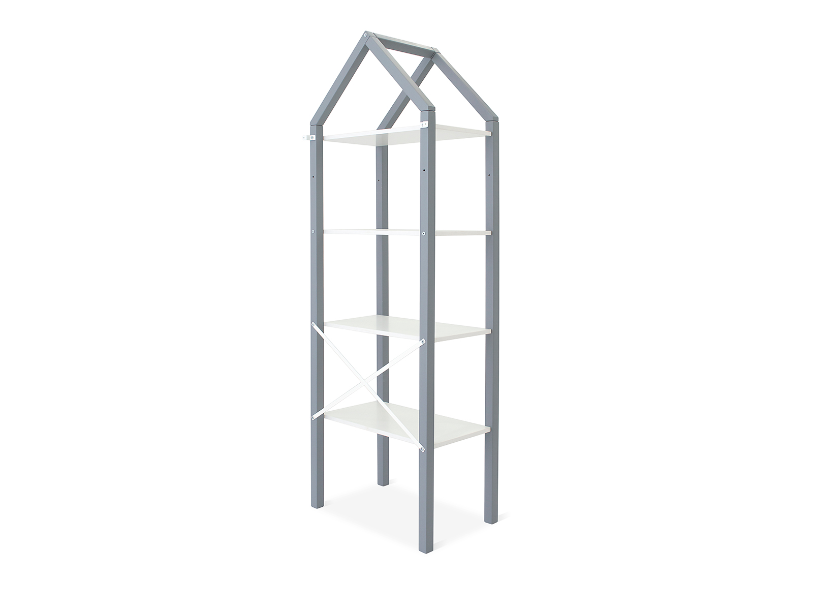 Короб для хранения приобретается отдельно!Стеллаж стоит на 4ех ножках. Для устойчивости конструкцию детского стеллажа можно прикрепить к стене с помощью специального уголка, который идет в комплекте. Стеллаж сконструирован так, что его можно использовать в двух вариантах – с четырьмя полками или с вешалом и одной полкой. Все необходимое для двух вариантов сборки стеллажа идет в комплекте. Крышу домика при желании можно снять.