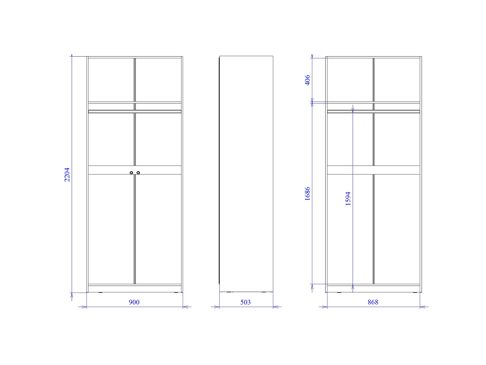 - Высота (мм) 2204