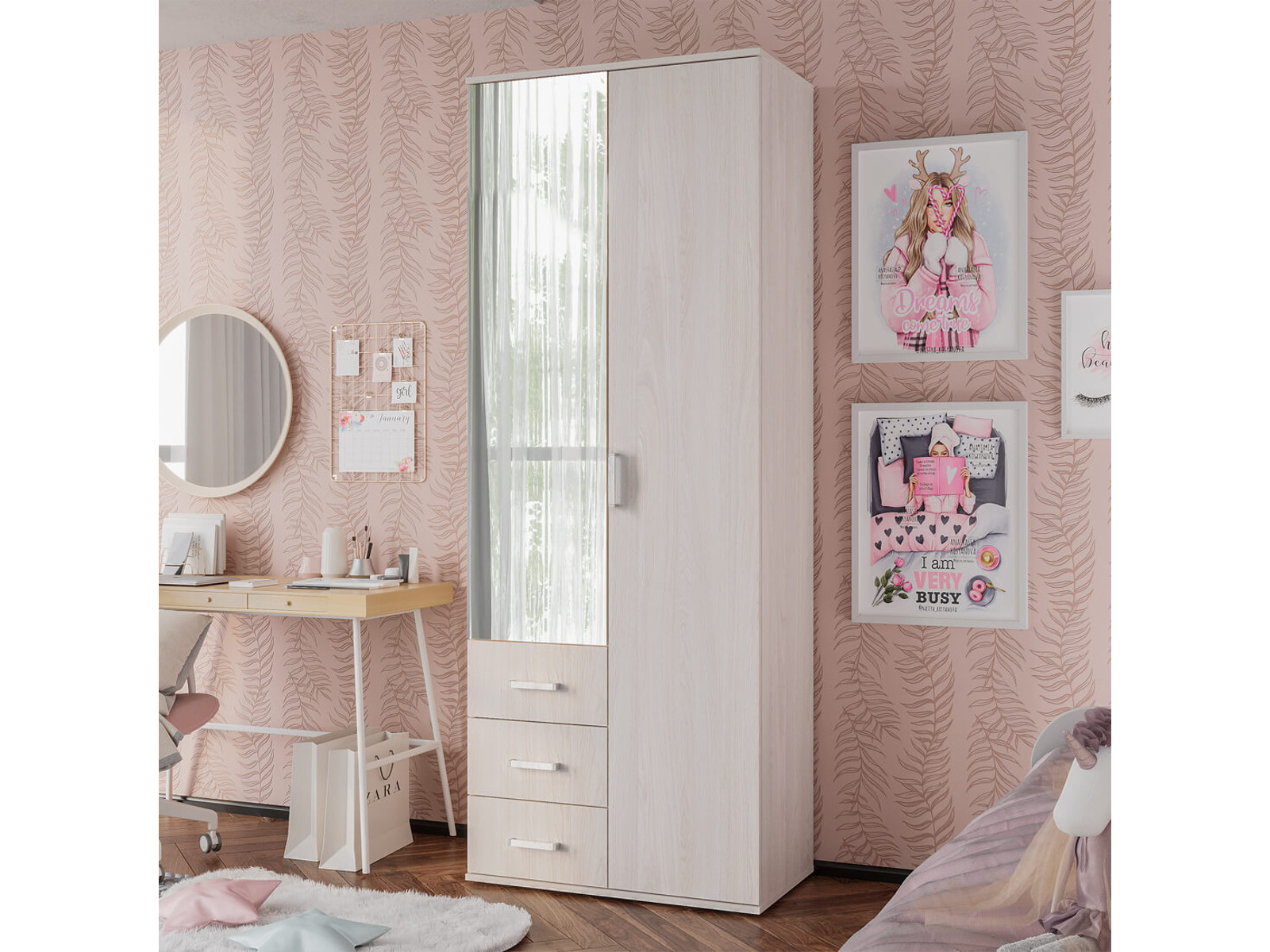 - Шкаф 2-х створчатый Белла ясень белый