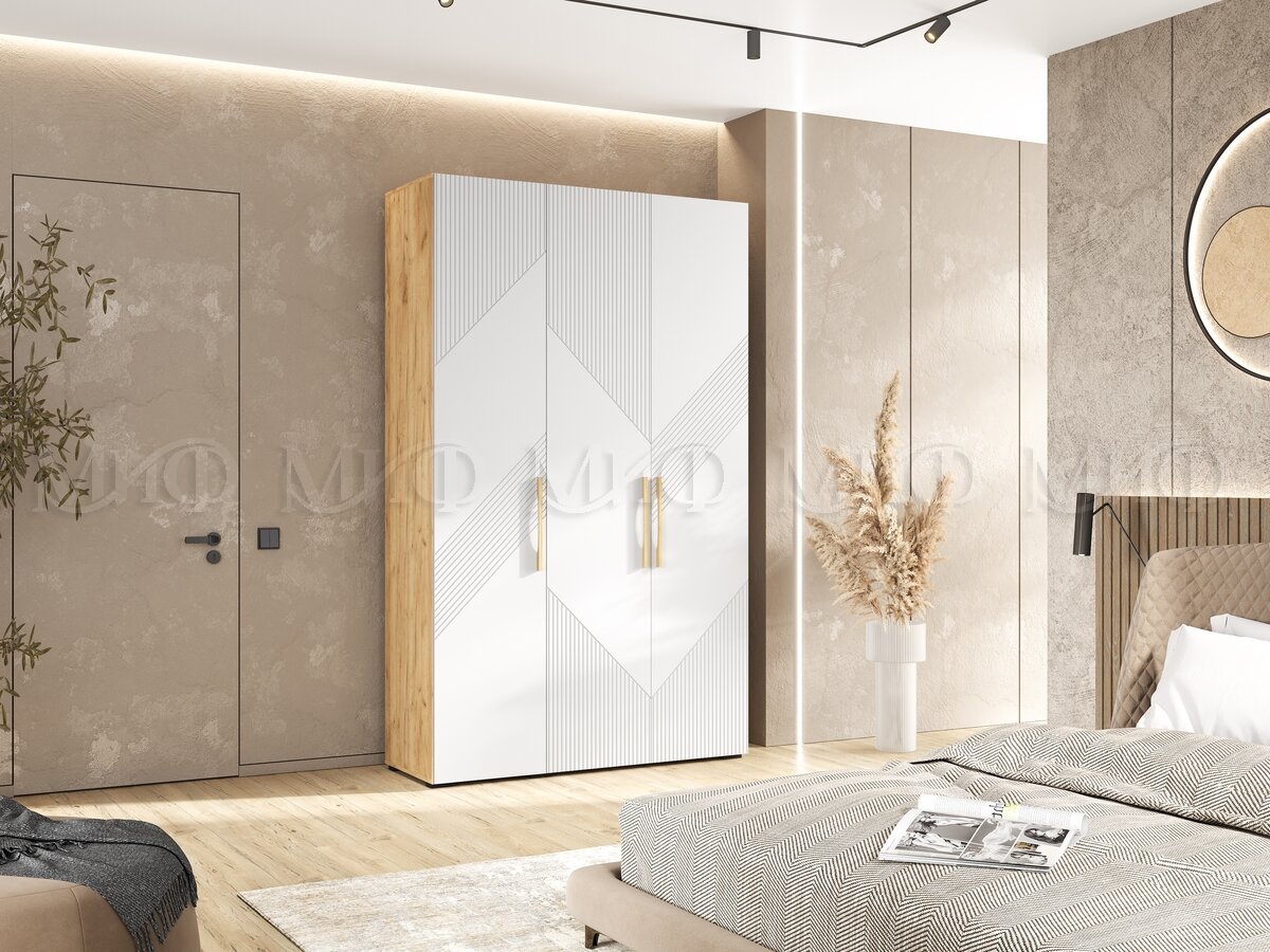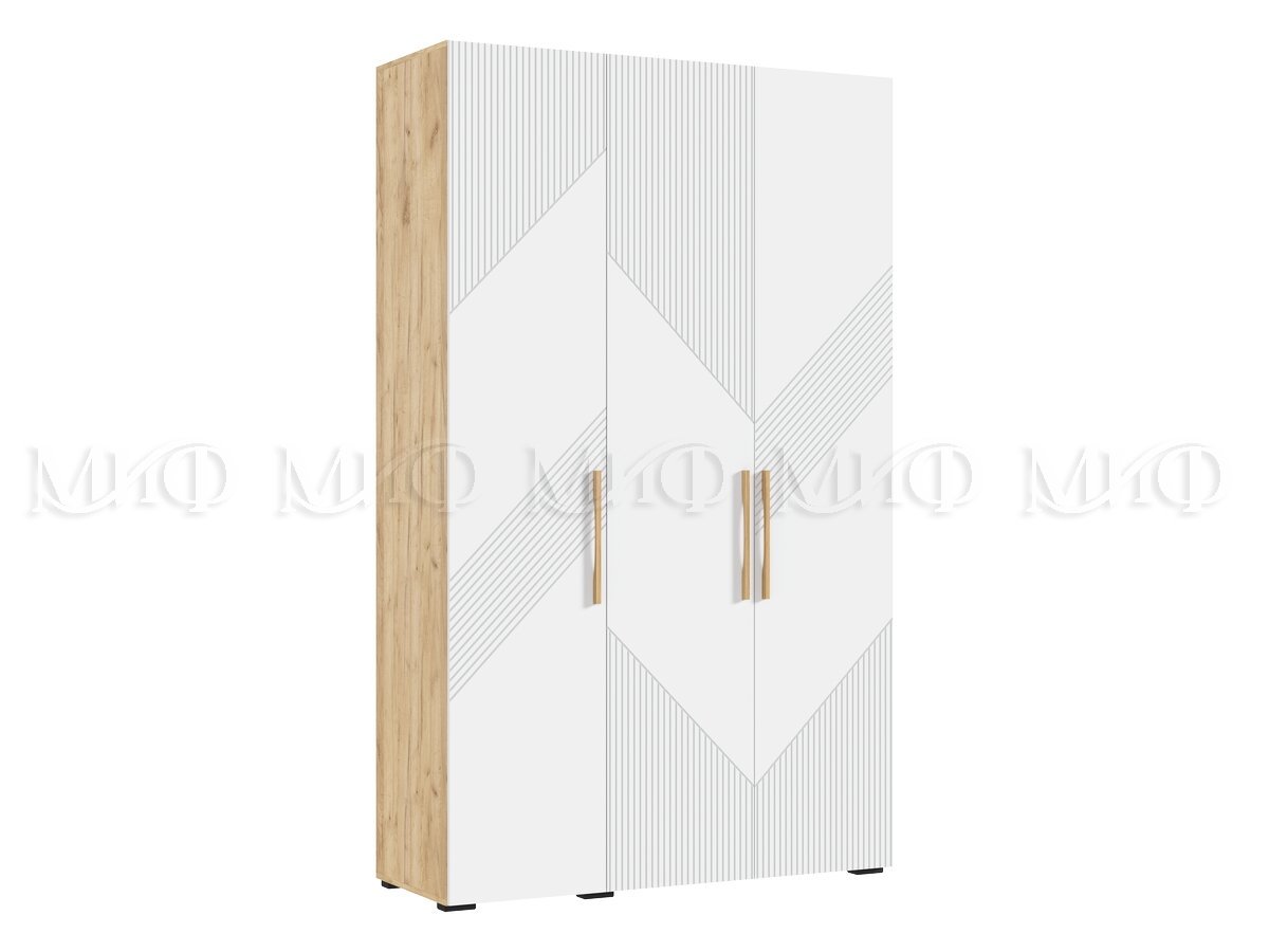 - Шкаф 3-х створчатый (1350) Ирис Браш Вайт, Дуб Крафт