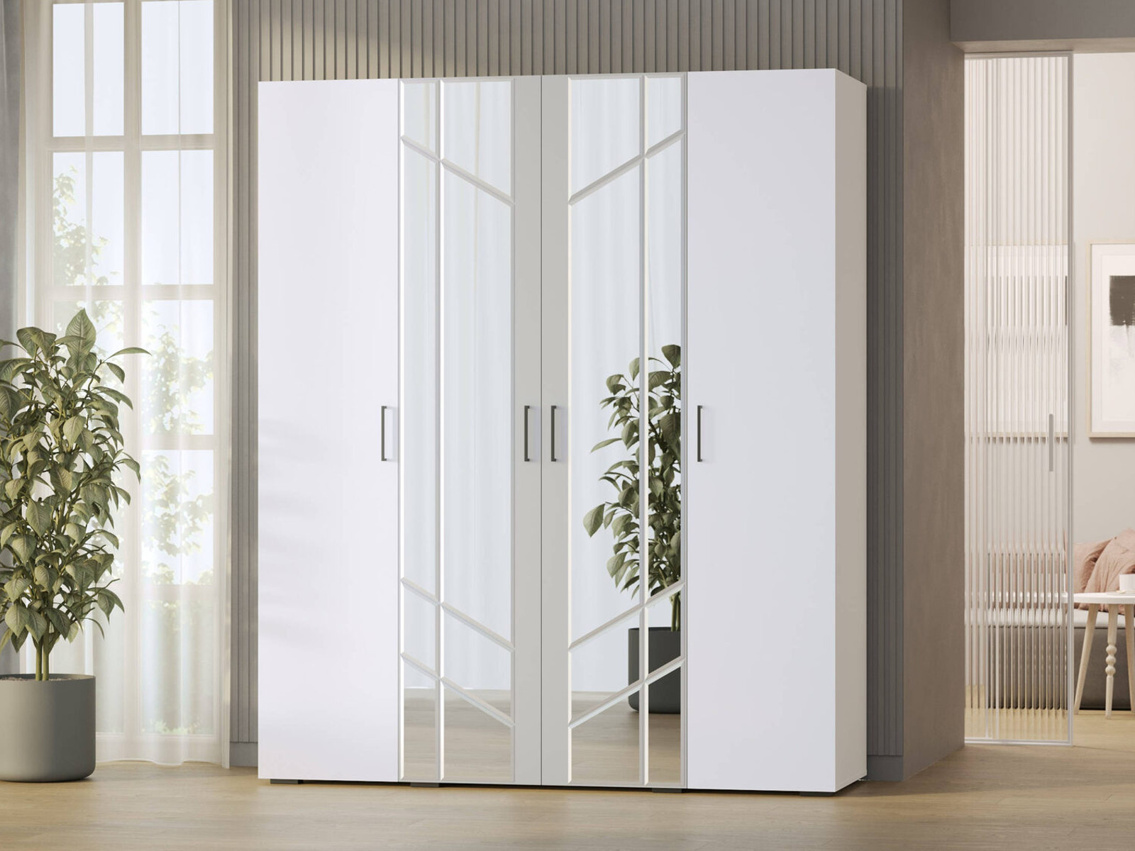 - Шкаф 4-х дверный с зеркалами 4-75938