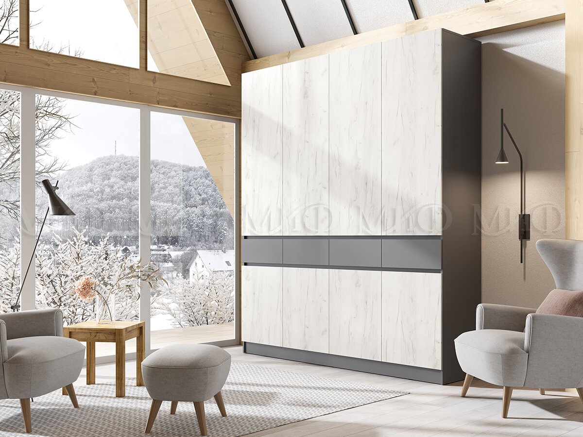Шкаф 4-х створчатый Роджина Графит/Дуб Крафт Белый