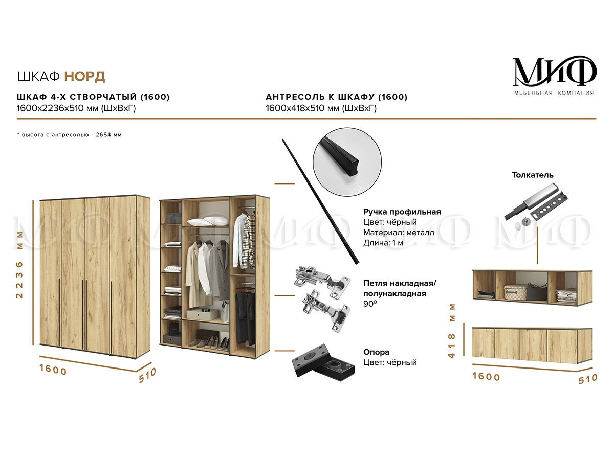 Размеры (Ш*В*Г): 1600*2654*510 мм