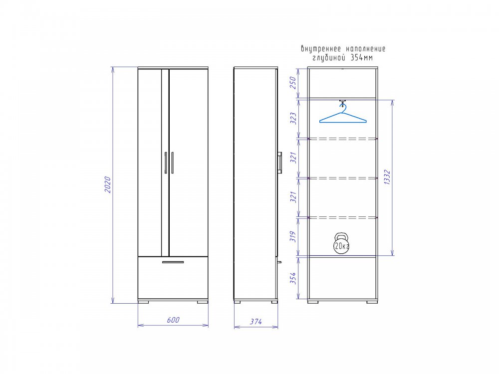 Шкаф Д-2 для одежды Денвер Риббек серый