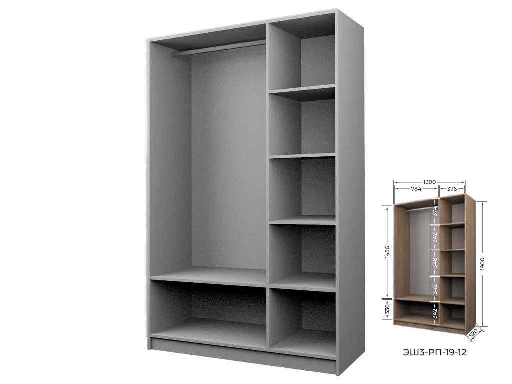 - Шкаф для Одежды Экон ЭШ3-РП-19-12 одно зеркало
