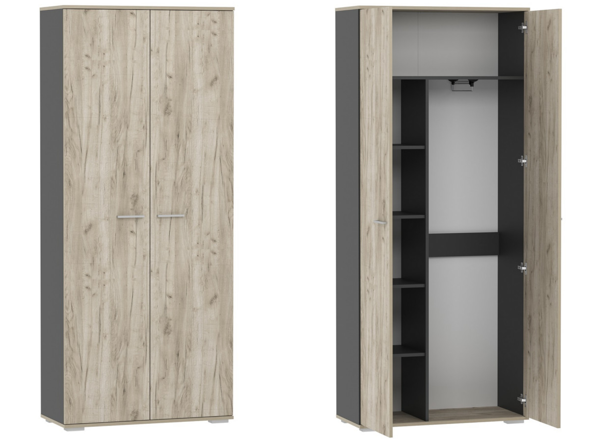 - Шкаф для одежды Санти НМ 040.42 Антрацит/Дуб Крафт Серый